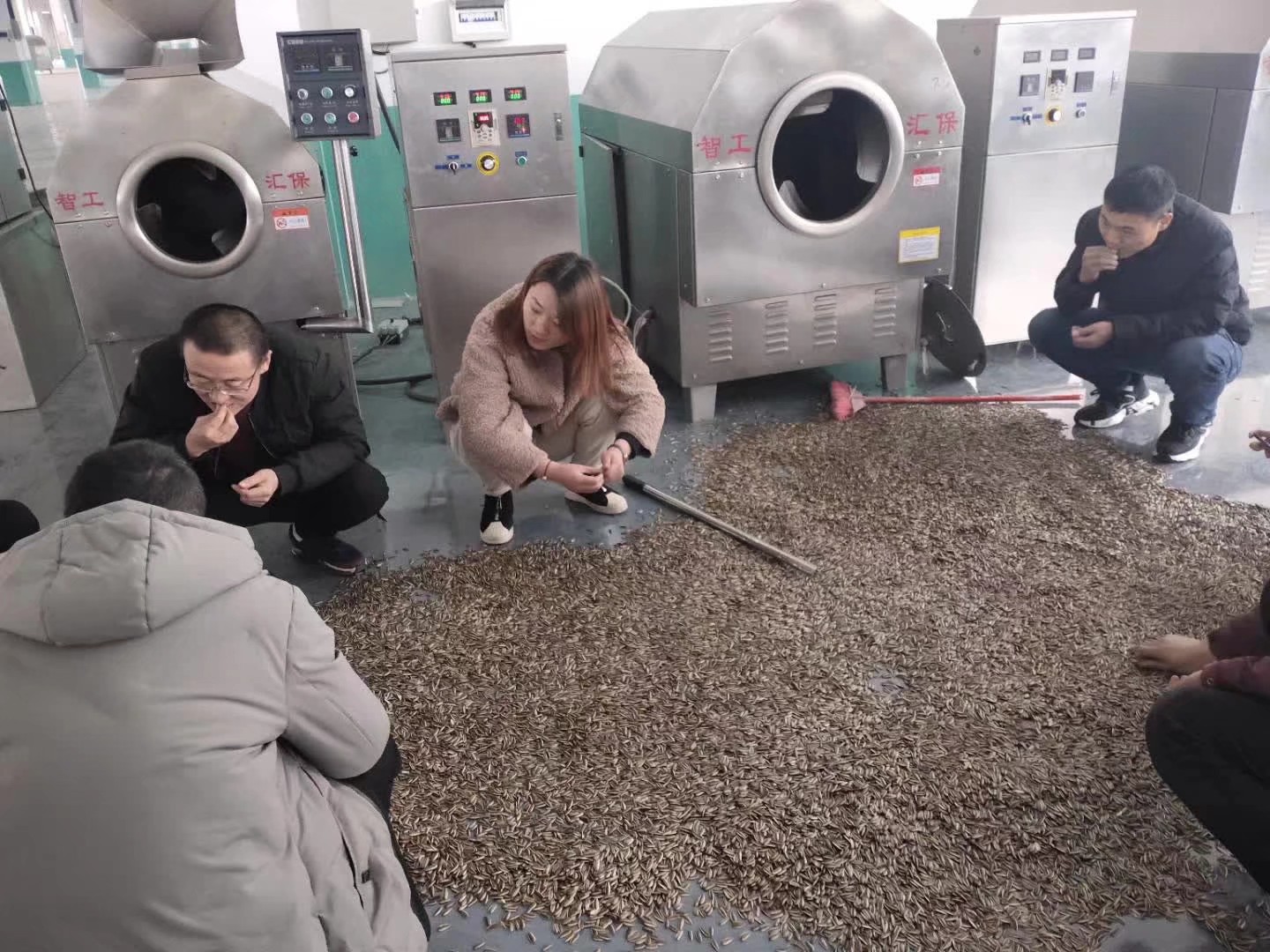 3.Save electricity and time: the electromagnetism heating system make the roller heat by itself, without heat medium. Work 30seconds, the temperature can be 100 degree centigrade. Improve the working efficiency. Baking 5KG sunflower seeds cost 0.6KW/H, 5KGsesame seeds cost 0.55kw/h.