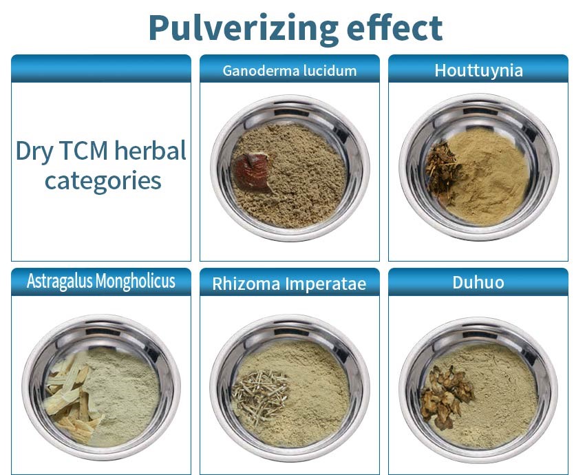 It is suitable for grinding dry materials into powder (10-150 mesh), mainly used for grain, spices, chemical materials, Chinese herbal medicine such as rice, corn, wheat, grain seeds, beans, chili, pepper, dry leaves, salt, sugar, etc.