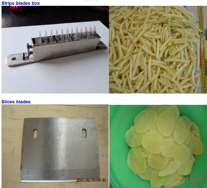 Potato cutting machine is mainly used to cut potatoes, sweet potatoes, carrots, leaf mustard and taros into strips, crinkles or slices. Round or other different types of potato chips could also be made through changing blades. This machine adopts centrifugal principle. The thickness of strips can be adjusted freely by increasing or decreasing spacers between the blades. It can be used in potato chips processing procedures, it was also widely adopted by restaurants and snack factories.